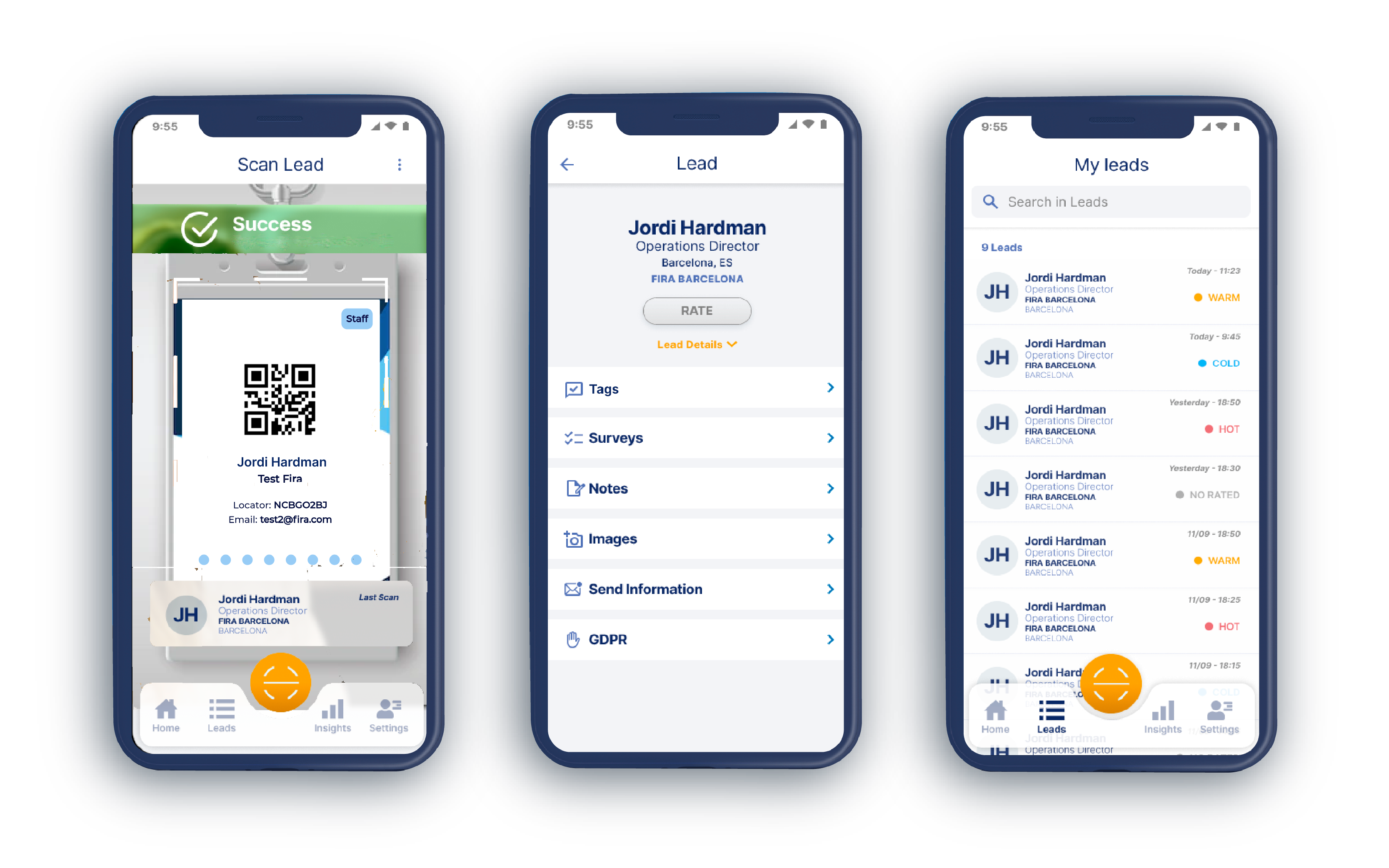 Use Lead Retrieval to capture your visitors' passes and obtain detailed information on their profiles. Check and update their contact data: names, companies, places of work, email addresses, etc.