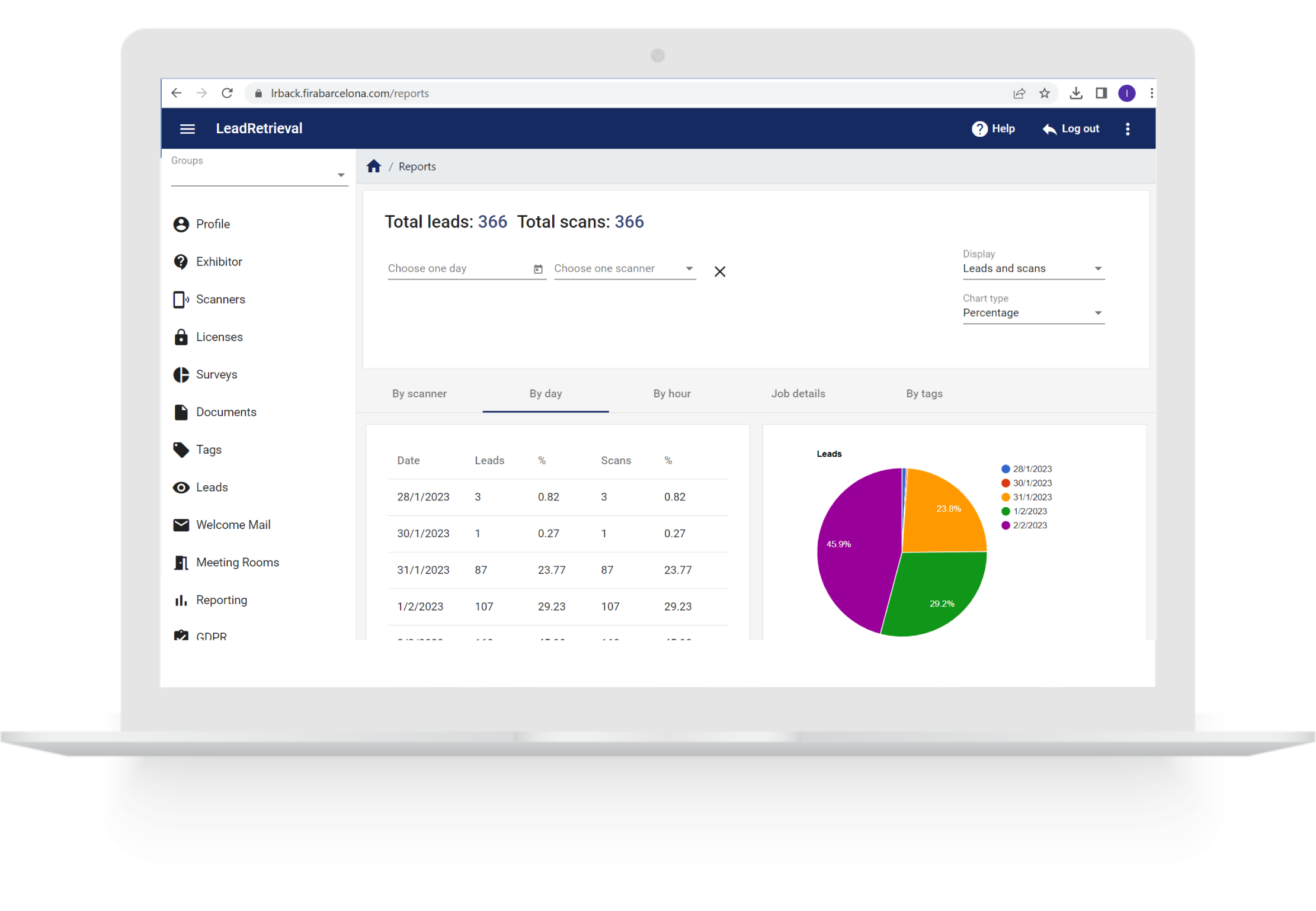 This scans the passes of visitors to the event and turns them into potential contacts. All the information on the scanned contacts is transferred in real time to the cloud, which is accessed via the web portal.