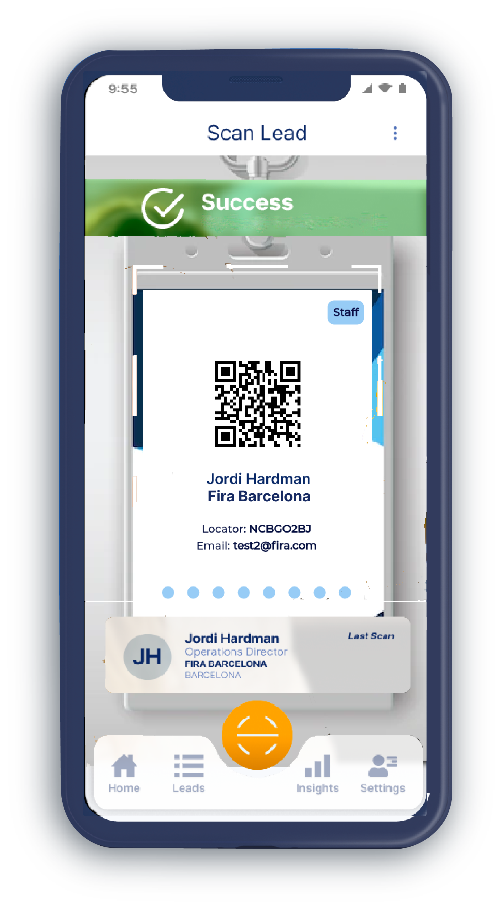- Rental of the mobile scanner (a mobile Android device with 4G data connectivity during the whole event, a mobile charter, and the Lead Retrieval app)